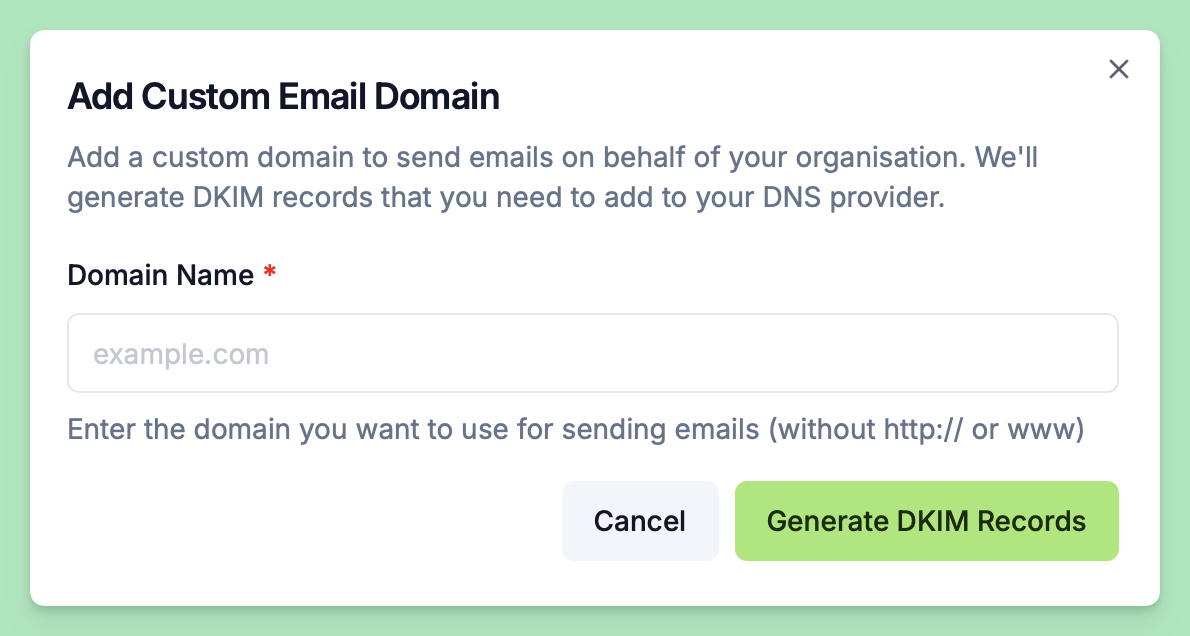 Implemented Email Domains which allows Platform/Enterprise customers to send emails to recipients using their custom emails.